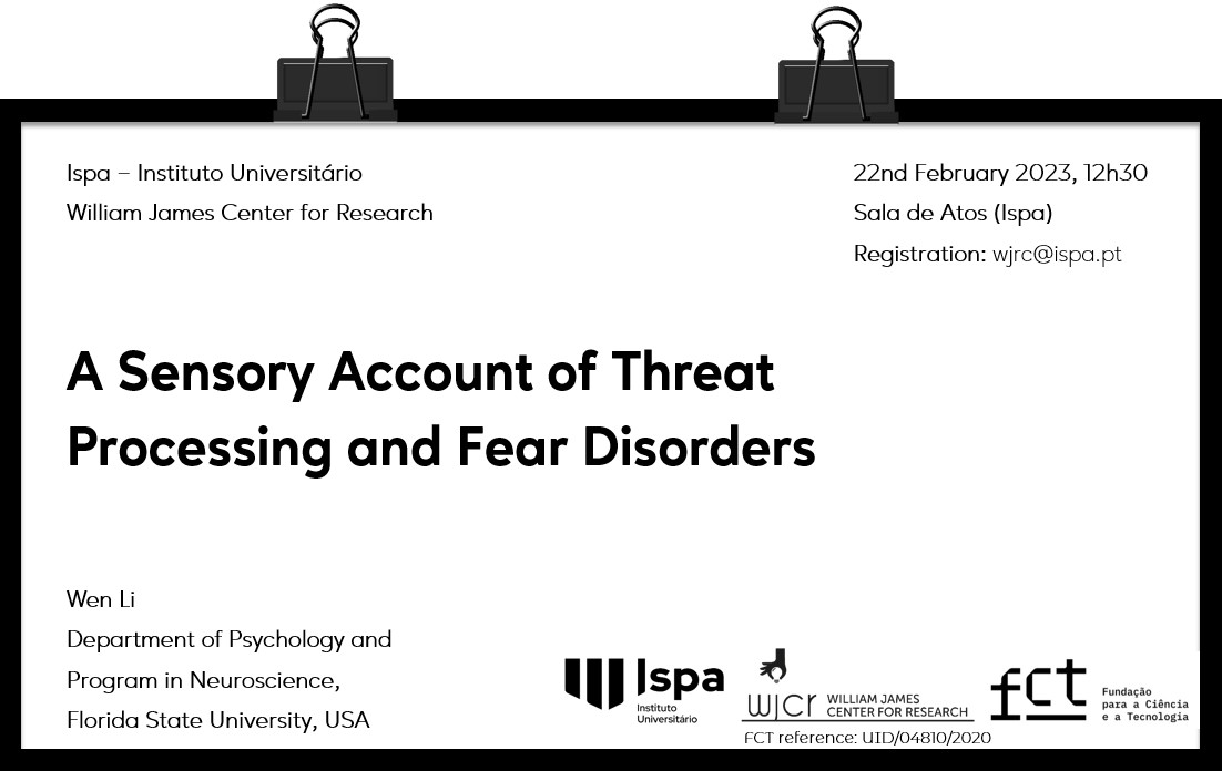 Professor Wen Li (Department of Psychology and Program in Neuroscience, Florida State University) will give a lecture entitled “A sensory account of threat processing and fear disorders”.