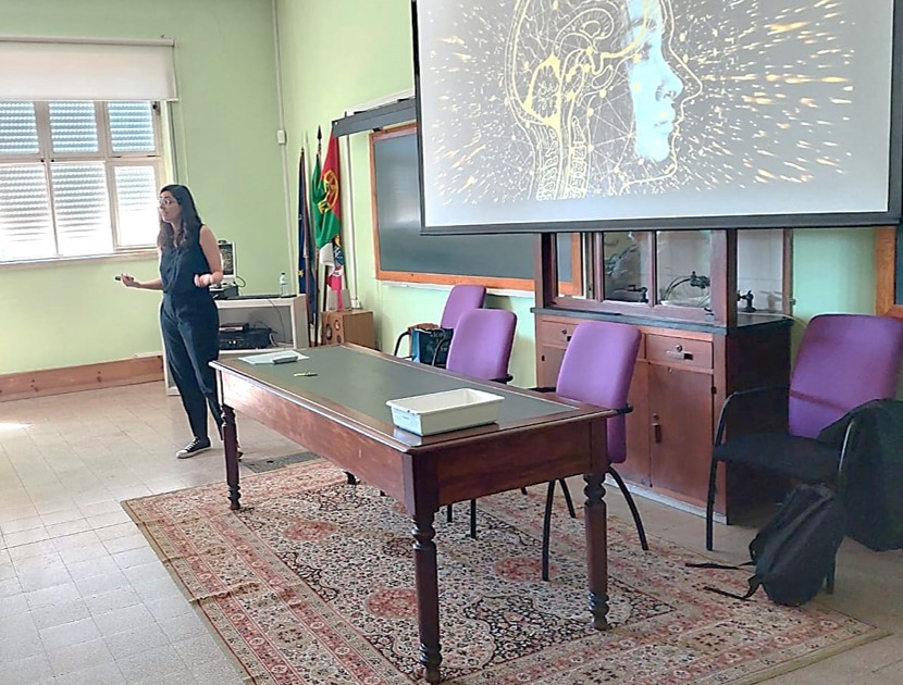 The William James Center for Research (WJCR) has visited Escola Secundária du Bocage as part of the “Cientificamente Provável” initiative. Dr. Inês Mares (WJCR, Ispa – Instituto Universitário) presented research conducted at the Center and discussed Neuroscience breakthroughs with high school students.