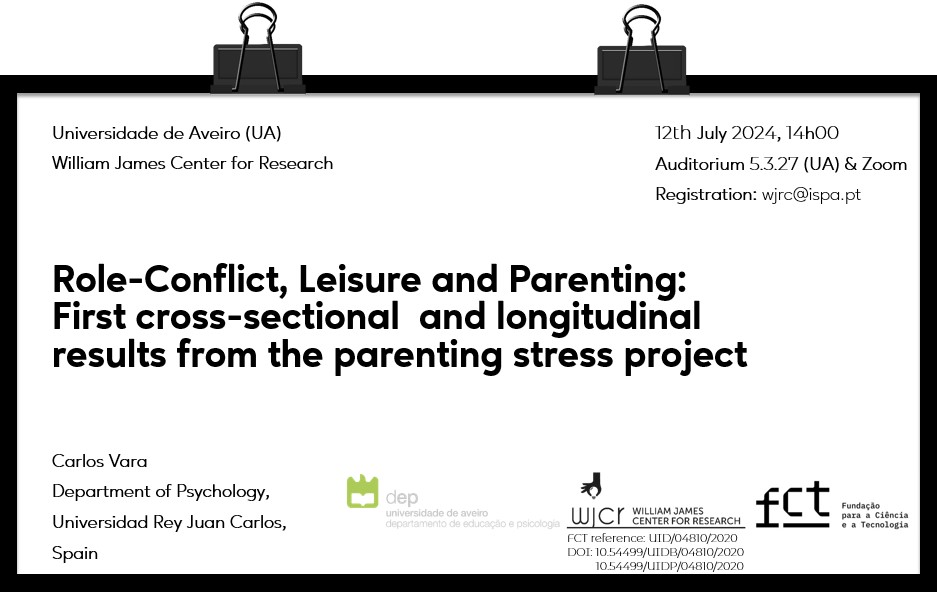 Prof. Dr. Carlos Vara (Department of Psychology – Universidad Rey Juan Carlos, Spain) will give a lecture entitled “Role-Conflict, Leisure and Parenting: First cross-sectional and longitudinal results from the parenting stress project”.
