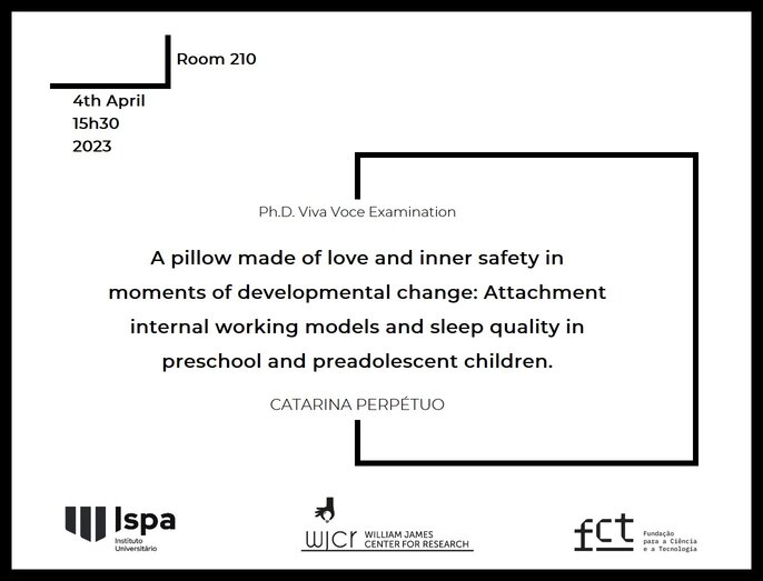 The William James Center for Research (WJCR) is pleased to announce that Catarina Perpétuo will defend her Ph.D. thesis on the 4th April 2023, at 15h30 – Room 210, Ispa – Instituto Universitário. The thesis is entitled “A pillow made of love and inner safety in moments of developmental change: Attachment internal working models and […]